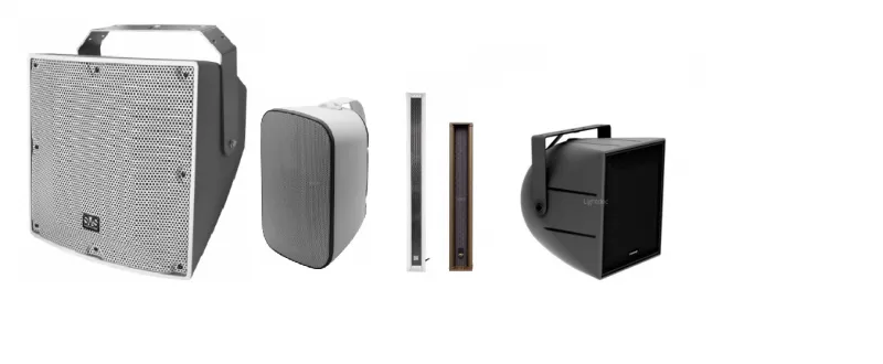 - Качество звука — несмотря на защиту, системы обеспечивают высокий уровень звукового давления и четкость звука на открытых площадках.