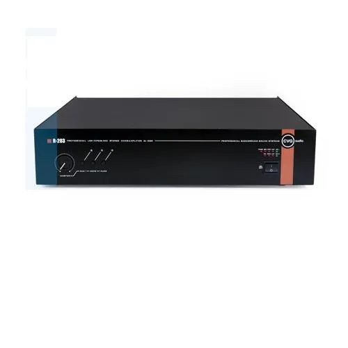 CVGaudio R-203 — двухканальный стереофонический усилитель для систем фонового звука. Мощность: 2х100W при 8ohm и 2х150W при 4ohm. Диапазон сопротивления нагрузки: 4–8ohm. Режимы работы: stereo/parallel/bridge (в режиме Bridge мощность 300W, сопротивление не менее 8ohm).