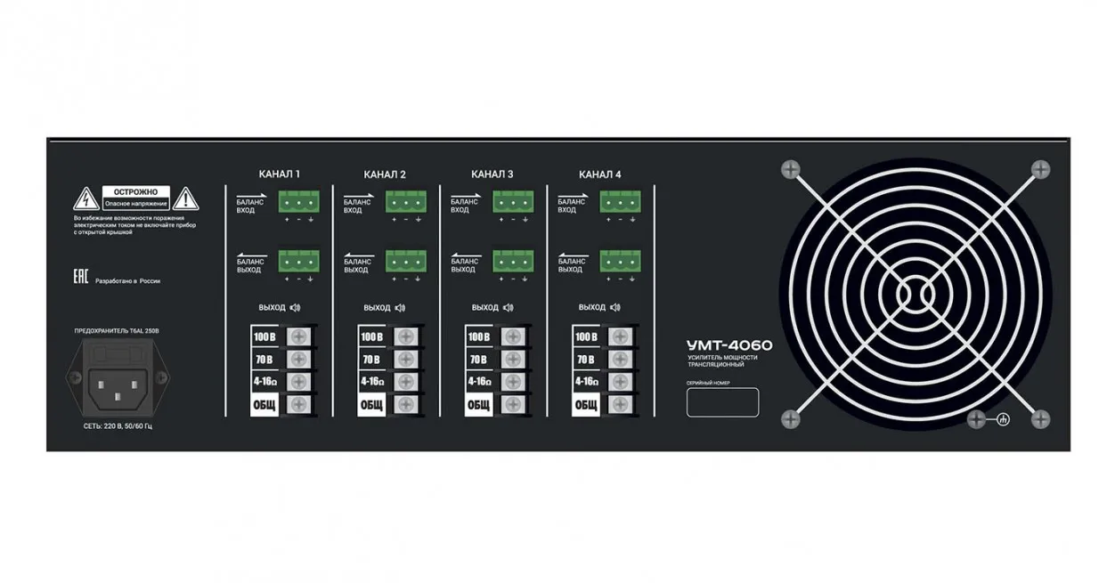 Усилитель мощности 4х60Вт/100В,70В выход или 4-16 Ом. Линейные вход /выходы,(разъем тип Phoenix). Индикация режимов работы усилителя. Регулировка уровня выходного сигнала, регулировка НЧ\ВЧ, многоступенчатая защита.Характеристики и возможности