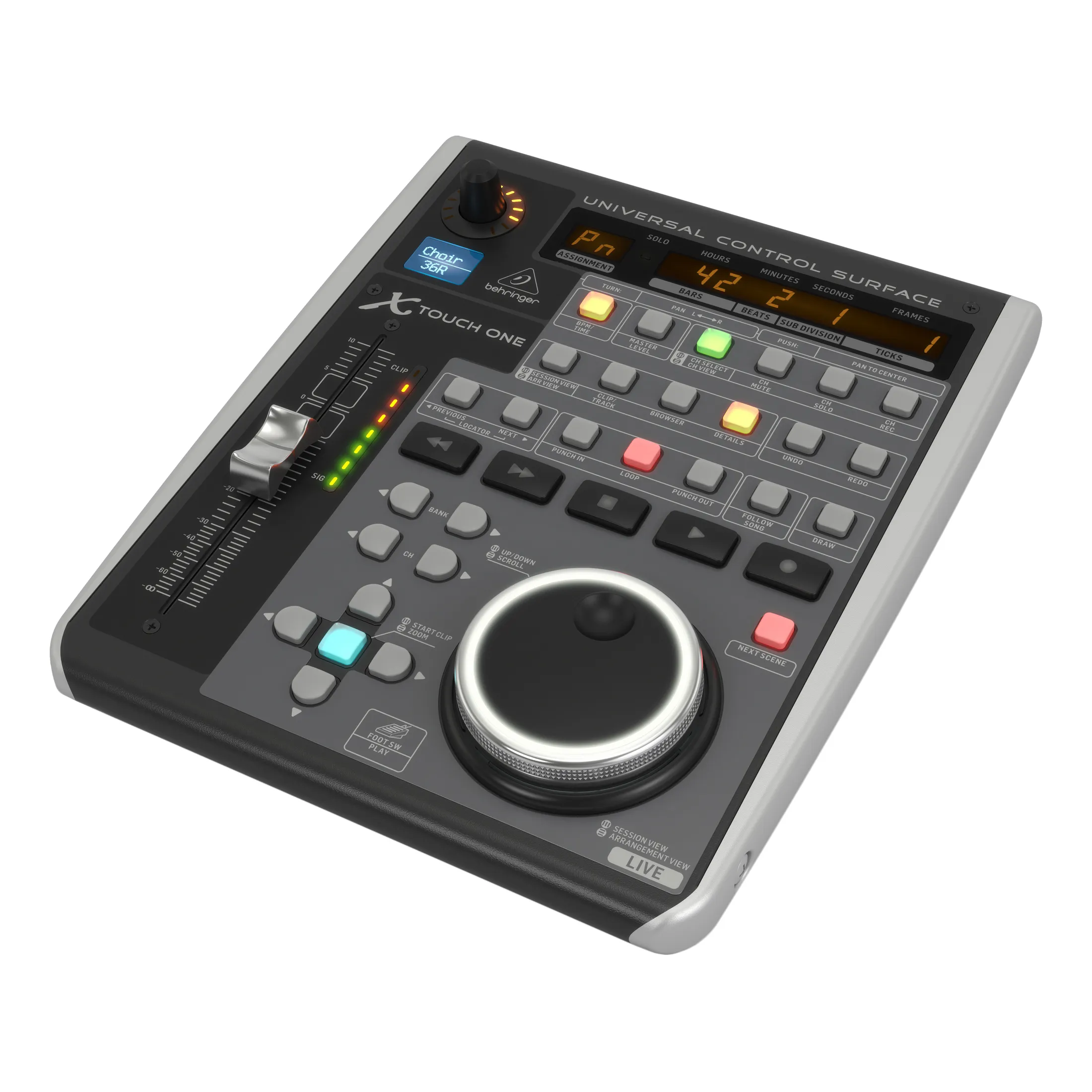 MIDI контроллер Behringer X-TOUCH ONEMIDI-контроллер Behringer X-TOUCH ONE — это универсальная поверхность управления для домашней студии или живых выступлений. Он оснащён сенсорным моторизированным фейдером, ЖК-панелью Scribble Strip, поворотным энкодером, 34 кнопками с подсветкой и 8-сегментным светодиодным индикатором.