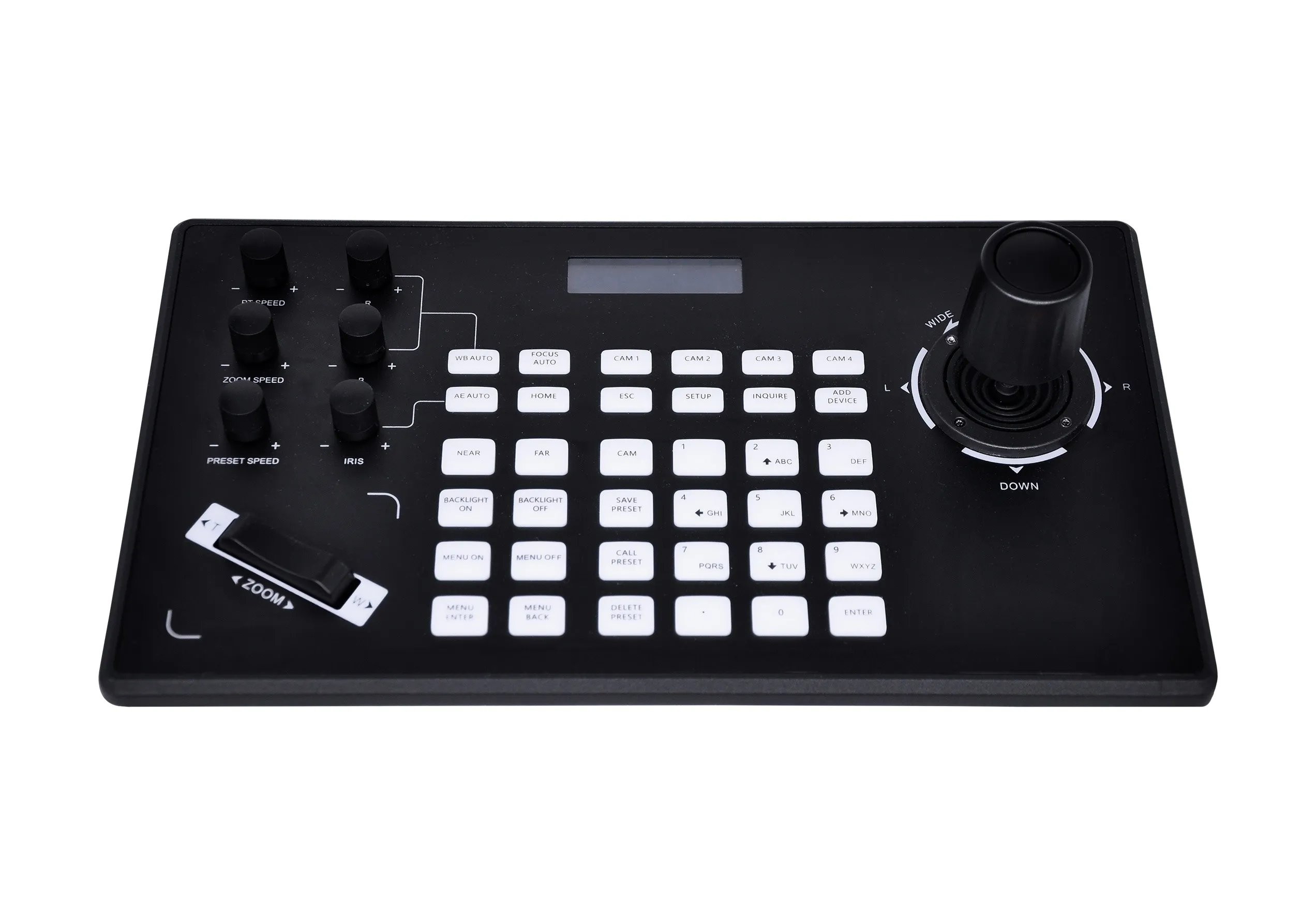 Пульт управления PTZ Infobit iControl J10 — это универсальный контроллер с джойстиком для PTZ-камер, совместимых с VISCA / PELCO. Просто подключите камеру с помощью кабеля DB9 к разъёму mini-din.