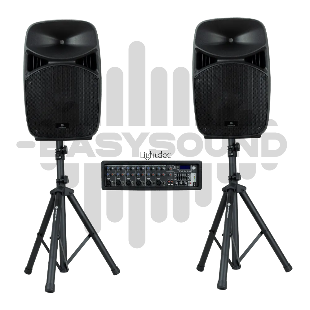 EasySound SIREN SET 2EQ SPEAKER — это активная акустическая система с усилителем. В комплекте: 15" колонка, стойка и кабель 5 м.