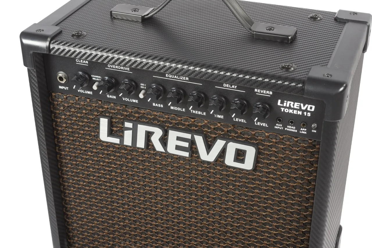 LiRevo TOKEN 15 - двухканальный транзисторный комбоусилитель мощностью 15Вт с электронным ревербератором, делэем и функцией подключения по Bluetooth - оптимальное решение для гитаристов, желающих создавать качественную музыку, будь то во время домашней репетиции, в кругу друзей на улице или при выступлении на небольшой сцене.