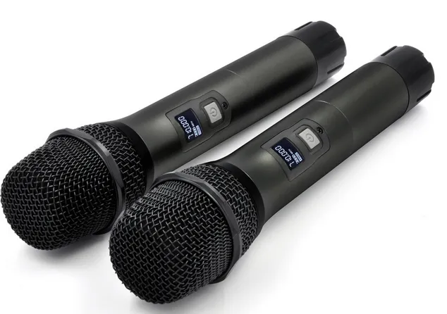 В комплекте: двухканальный приёмник, два ручных микрофона, аудиокабель, антенны, адаптер питания, руководство пользователя, держатели микрофонов и силиконовые кольца.