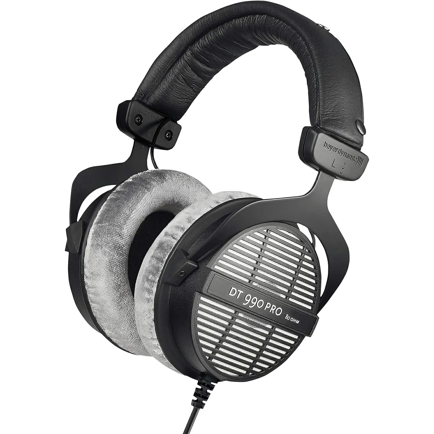 Beyerdynamic DT 990 Pro (80 Ohm) — профессиональные открытые наушники с трёхмерным звучанием и широкой панорамой. Обеспечивают естественный тембральный баланс благодаря ровной АЧХ. Имеют лёгкую мембрану и удобную конструкцию. Подходят для длительного использования. Оснащены кабелем 3 м и разъёмом 3,5 мм с переходником на 6,35 мм. Характеристики: диапазон частот 5–35000 Гц, сопротивление 80 Ом, вес 250 г.