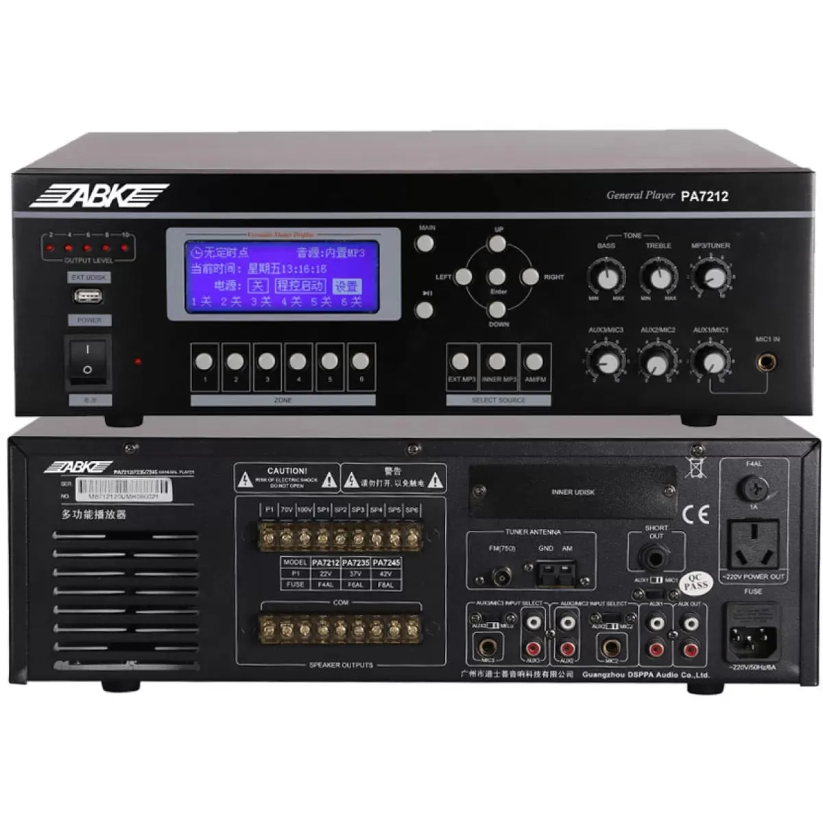 Мульти-плеер ABK PA-7212ABK PA-7212 — это мульти-плеер для систем музыкально-речевой трансляции и оповещения на 6 зон вещания с напряжением 100/70 В. Устройство оснащено встроенным MP3-плеером, цифровым AM/FM-тюнером с памятью на 40 радиостанций и программируемым таймером.