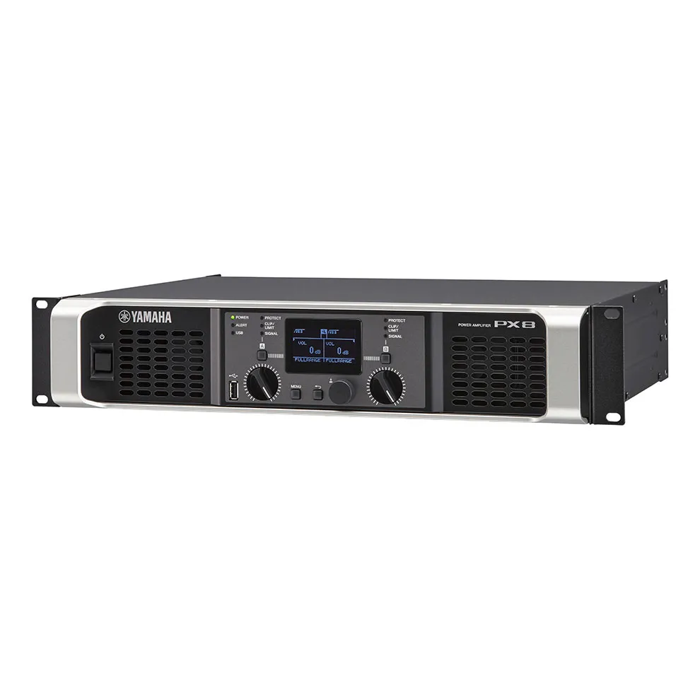 Усилитель мощности Yamaha PX8 — мощная интеллектуальная система с обработкой сигнала. Характеристики: 2 х 800 Вт на 8 Ом и 2 х 1050 Вт на 4 Ом. Особенности: класс D, PEQ, фильтры, функции задержки и лимитера. Предустановленные настройки для акустических систем Yamaha.
