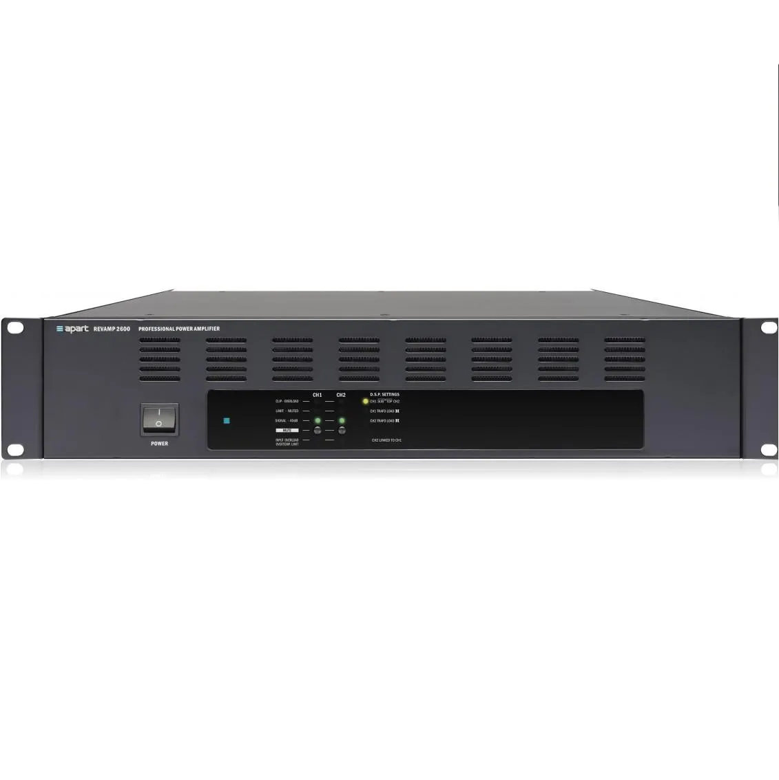 BIAMP APART REVAMP2600 – это коммерческий двухканальный рэковый усилитель мощности класса H от компании BIAMP APART (высота – 2U). Изготовлен в надежном металлическом корпусе, рассчитанном на размещение в рэковой стойке. Он обеспечивает высокий уровень звука для профессиональных АС и может быть использован в постоянных и временных инсталляциях, для озвучивания торговых и общественных заведений, он отлично подходит для мест, где необходимо два раздельных канала, либо стереозвучание. Как правило, рекомендуется использовать усилитель с необходимой программной выходной мощностью или удвоенной номинальной RMS.