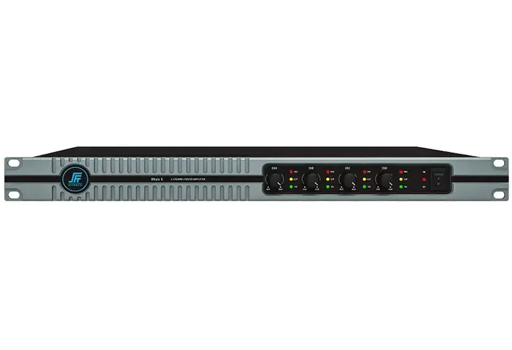Описание усилителя мощностиS-Track Whale X4350 — это цифровой усилитель с защитой от перегрузки по току питания, перегрева и перегрузки. Его можно соединять каскадно с другими устройствами.