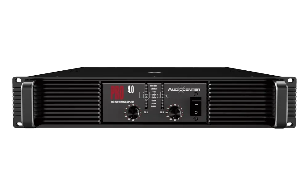 Audiocenter PRO4.0 — двухканальный бюджетный усилитель мощности H+ класса. Обеспечивает высокое качество звука, надёжен и технологичен.